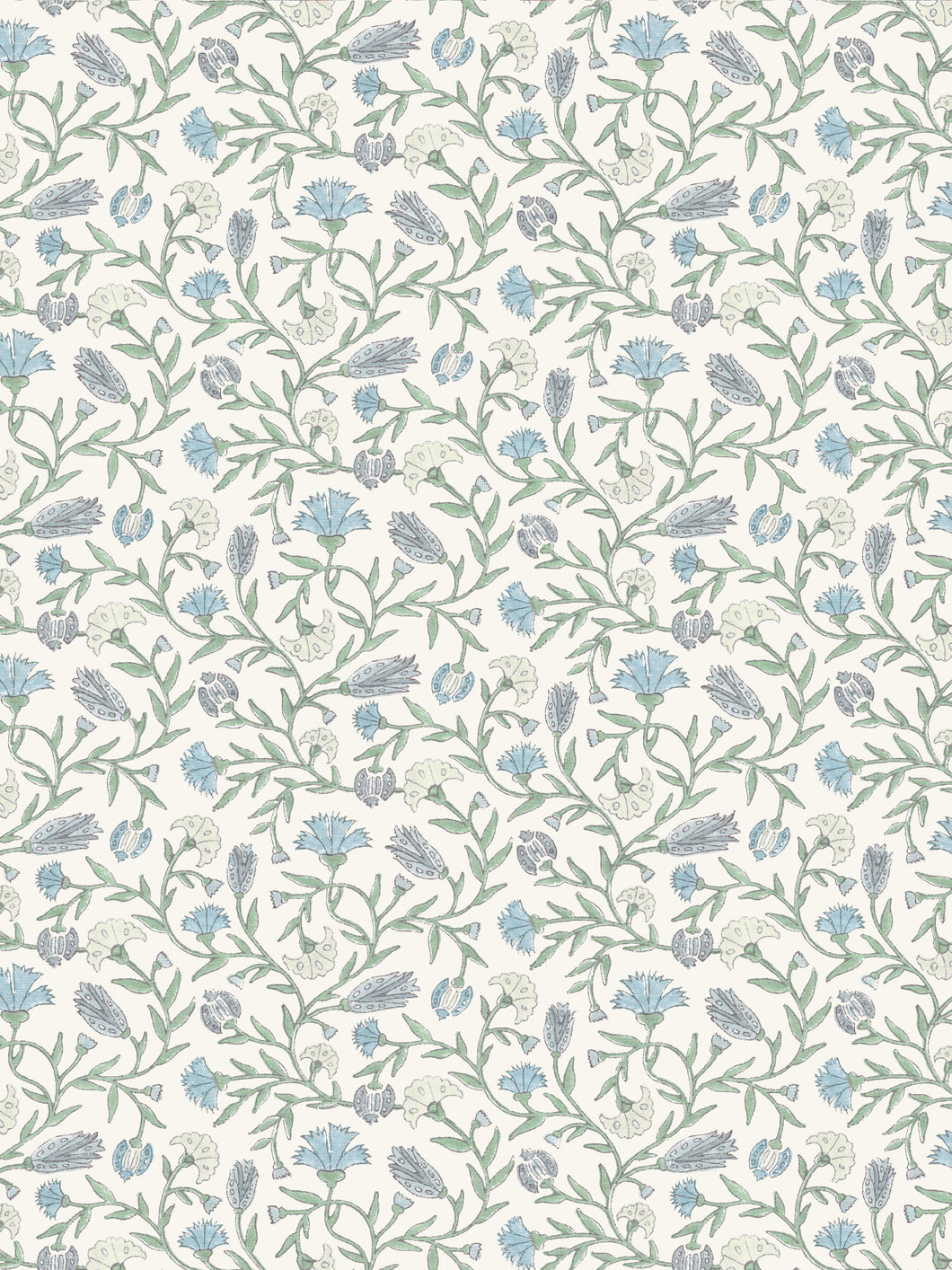 A perfect print for a bedroom, this charming floral and whimsical paper is evocative of a Mediterranean garden. Available in two beautiful colourways - a soft blend of green with blues and a lively pairing of pinks with blues - it offers a fresh and feminine touch, perfect to bring different elements of a room together.