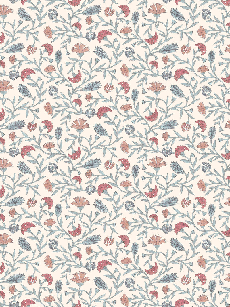 A perfect print for a bedroom, this charming floral and whimsical paper is evocative of a Mediterranean garden. Available in two beautiful colourways - a soft blend of green with blues and a lively pairing of pinks with blues - it offers a fresh and feminine touch, perfect to bring different elements of a room together.