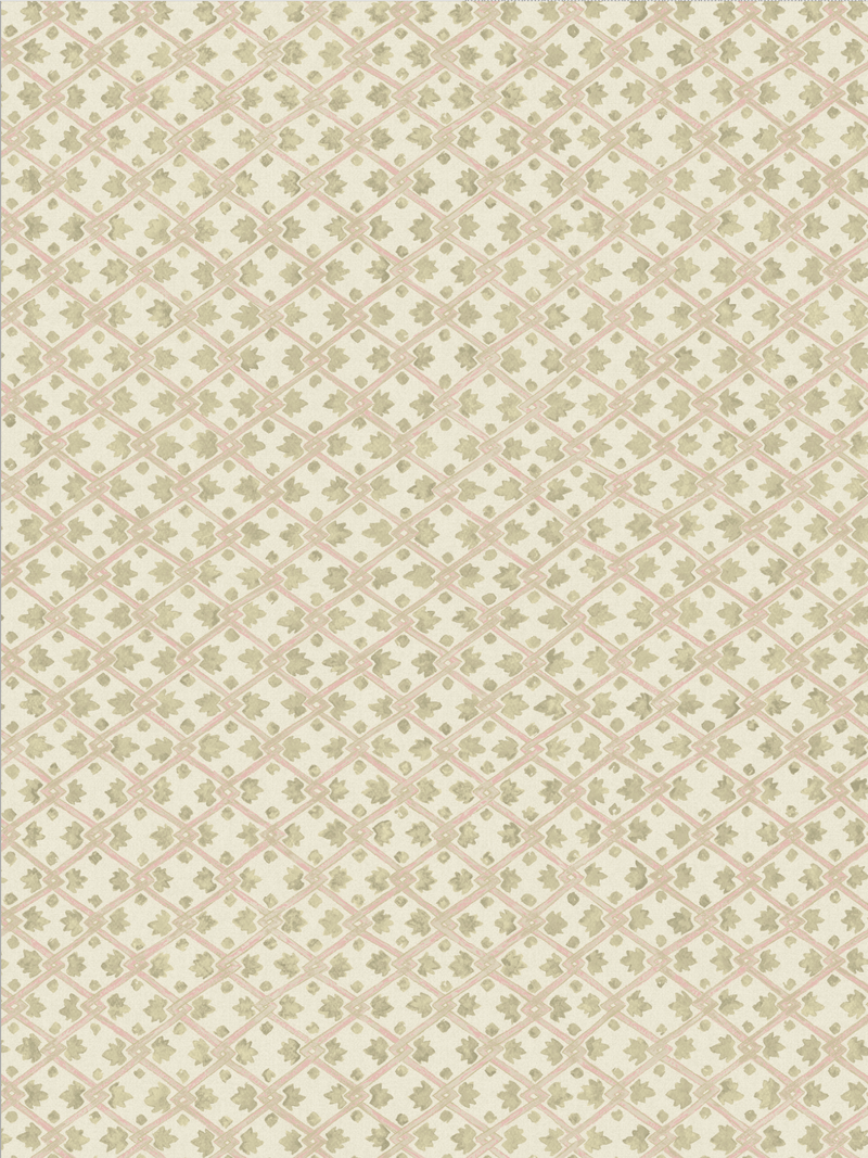 Inspired by decorative door ironmongery, this delicate design is made of interlocking trellises and leaves rendered in different densities to give a hand-drawn quality. Shades of Putty, Blue and Teal introduce softness, making this effortless all-over print very easy on the eye.