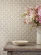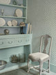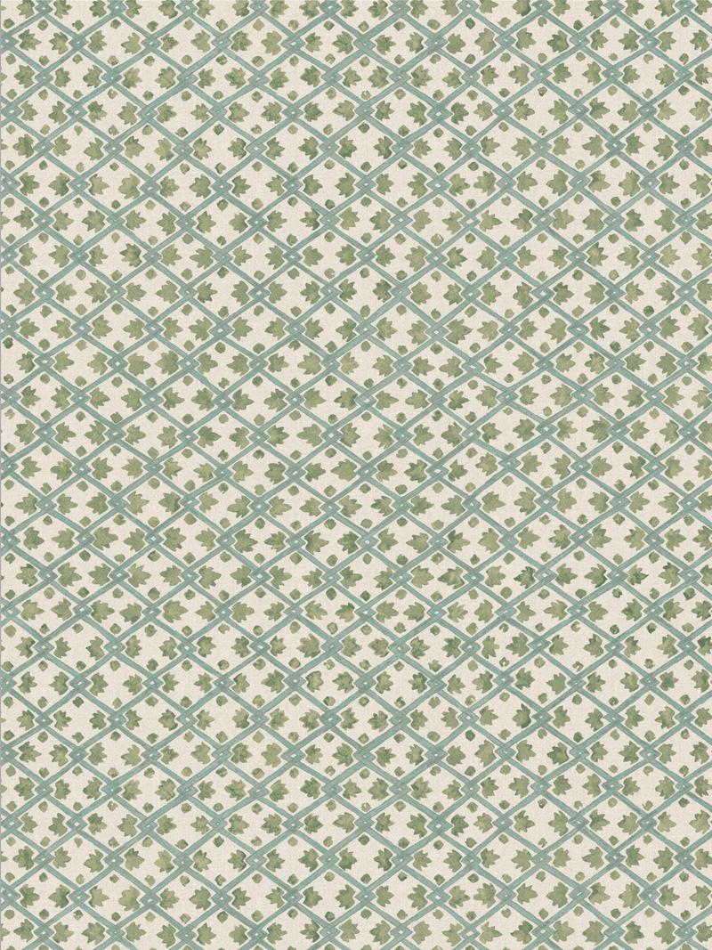 Inspired by decorative door ironmongery, this delicate design is made of interlocking trellises and leaves rendered in different densities to give a hand-drawn quality. Shades of Putty, Blue and Teal introduce softness, making this effortless all-over print very easy on the eye.