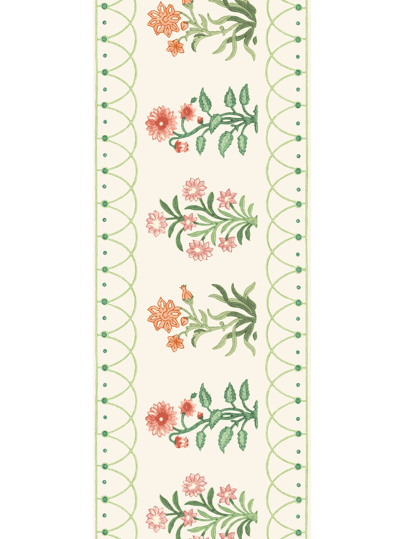 This very pretty border combines details of the Hoopla wallpaper with our much-loved Bindi Flower motifs. At 15cm wide, it is larger than our other borders making it perfect for spaces needing a little extra. Create your own indoor flower bed along skirting boards and around architraves.